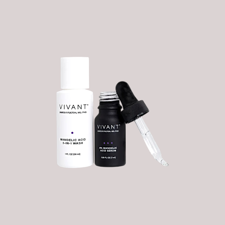 Mini sizes of two of our most popular Clinical Mandelic Acid formulas in a single package—perfect for travel or gifting. Mandelic Acid 3-In-1 Wash is the foundation of a system for clear, even-toned skin. Our “magic in a bottle” 8% Mandelic Acid 3-In-1 Serum gently resurfaces, brightens, minimizes the look of pores, and helps reduce acne-causing bacteria for radiant, healthy-looking tone and texture.